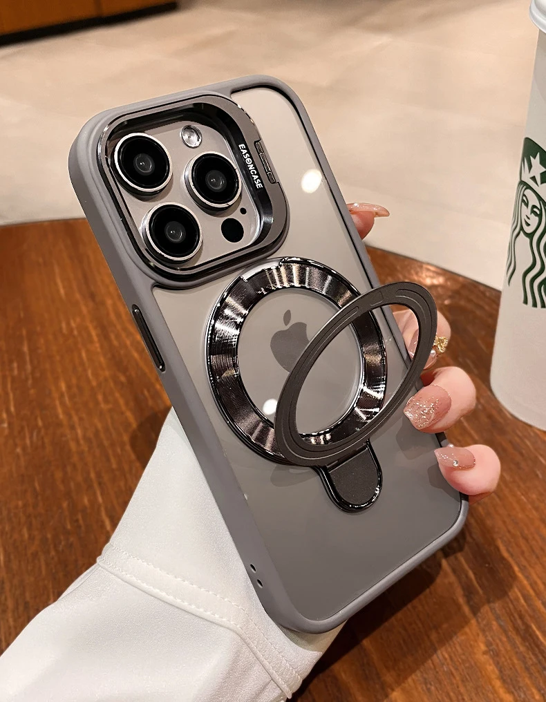 Magnetic Wireless Charging Case 16 15 Pro Max Crystal Clear Camera Protection Metal Stand Mobile Cover for iPhone 17