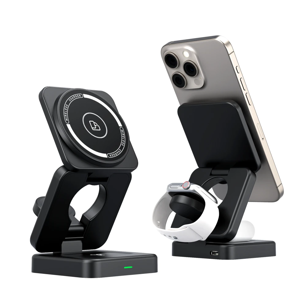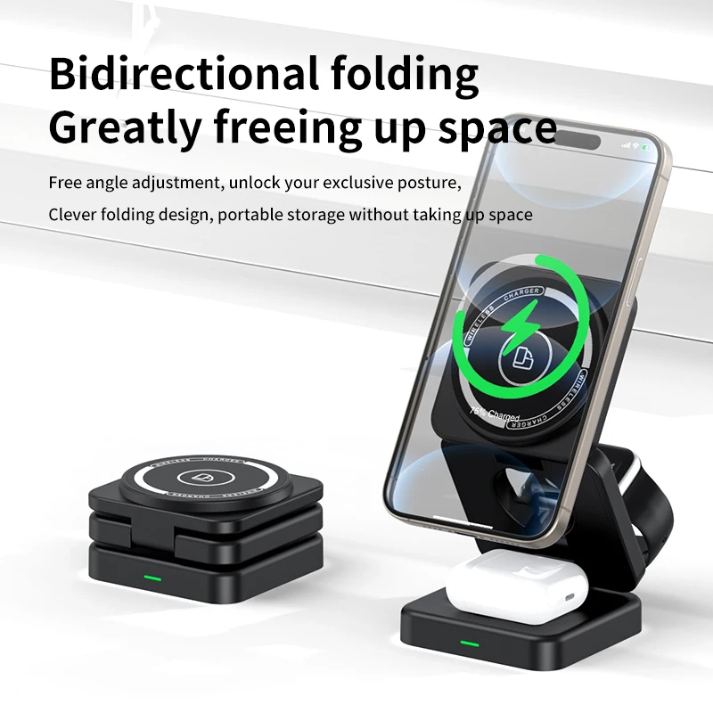 Magnetic Wireless Charging Stand Light Display Touch Switch for Lighting Foldable Storage 15W Phone Faster Charger