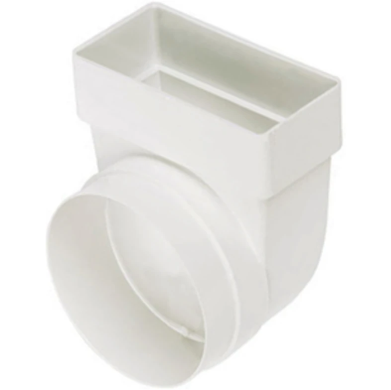 Elbow bend connector for joining round pipe, flexi hose and flat channel ducting. · · · Height: 90mm · · Width: 115mm · · Depth: 140mm