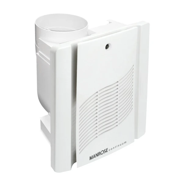 Manrose Continuum Series Centrifugal Fan is designed to provide silent, continuous ventilation to any W.C., bathroom, utility room or kitchen. It can be mounted on walls or ceilings, requires low maintenance, includes a long life, low energy motor and is designed for automatic, trouble free operation. This provides an alternative to higher priced filterless fans, without compromising on function or performance. It is designed for surface or flush mounting due to the unique cassette design of the motor and impeller assembly. The rear spigot can be mounted in 2 positions allowing for rear exit or connecting to a vertical ducted system. · · · Low energy motor saving running costs with only 1.5 Watts at trickle speed · · Easy clean and filterless and reducing maintenance · · Rigid or flexible duct can be used · · Integrated humidity sensor providing automatic operation when needed · · Designed to run continuously with a boost function to comply with Part F