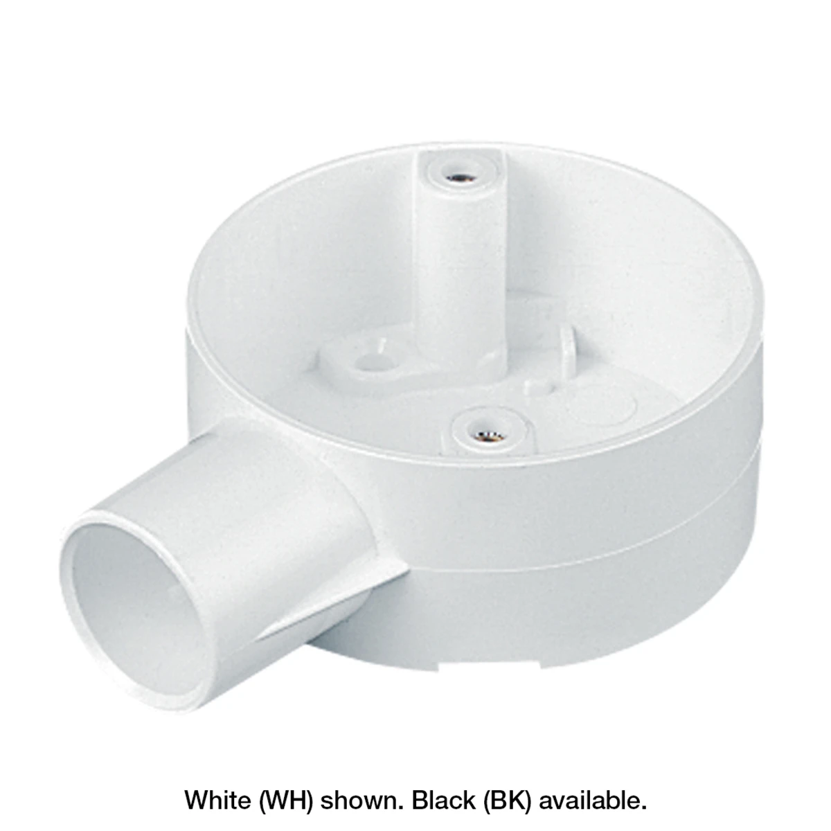 Circular terminal box made up of a black polyvinyl chloride (PVC) housing body, designed for use as an accessory for electrical conduits. Suitable for use in industrial and commercial environments plus is capable of suspending load of up to 3kg centrally · · · Durable and impact resistant · · Easy to assemble and install · · Fixing centre is 50.8mm and fitted with M4 brass insert. · · Provision for MET1 brass earth terminal · · All boxes have threaded brass inserts · · Manufactured using 100% recycled material