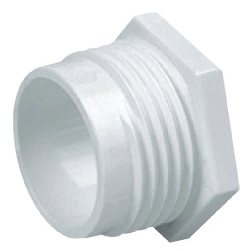 Conduit fitting (Male Bush) made up of a super high impact white polyvinyl chloride (PVCu) body, designed for use as an accessory for electrical conduits. Suitable for use in industrial and commercial environments. · · · Durable and impact resistant · · Easy to assemble and install · · Screw fitting · · Provision for MET1 brass earth terminal · · All boxes have threaded brass inserts · · Manufactured using 100% recycled material