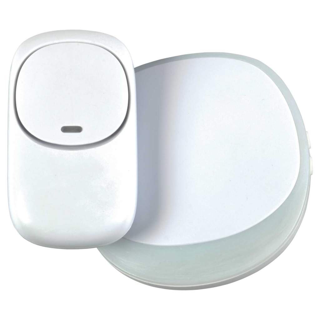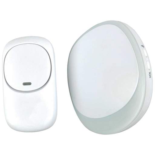 Wireless plug-in doorbell with LED alert | Simple wire-free installation | Auto-learn pairing function | Up to 150m wireless range | 38 selectable ring tones and melodies | Can also be used as an assistance button | Frequency 433.92MHz+100KHz | Operating range Up to 150m | Volume 80dB 90dB(within 0.5m) | IP rating IP44