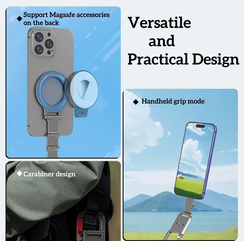 Metal Double-Sided Magnetic Phone Stand Compatible With Magsafe iPhone 17/16/15/14/13/12 Plus Pro Max Phone Mount with Carabiner