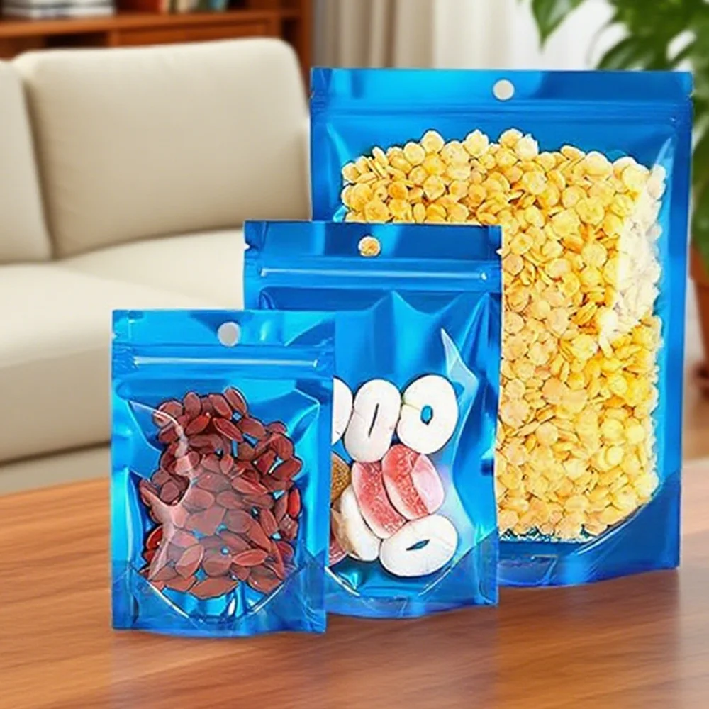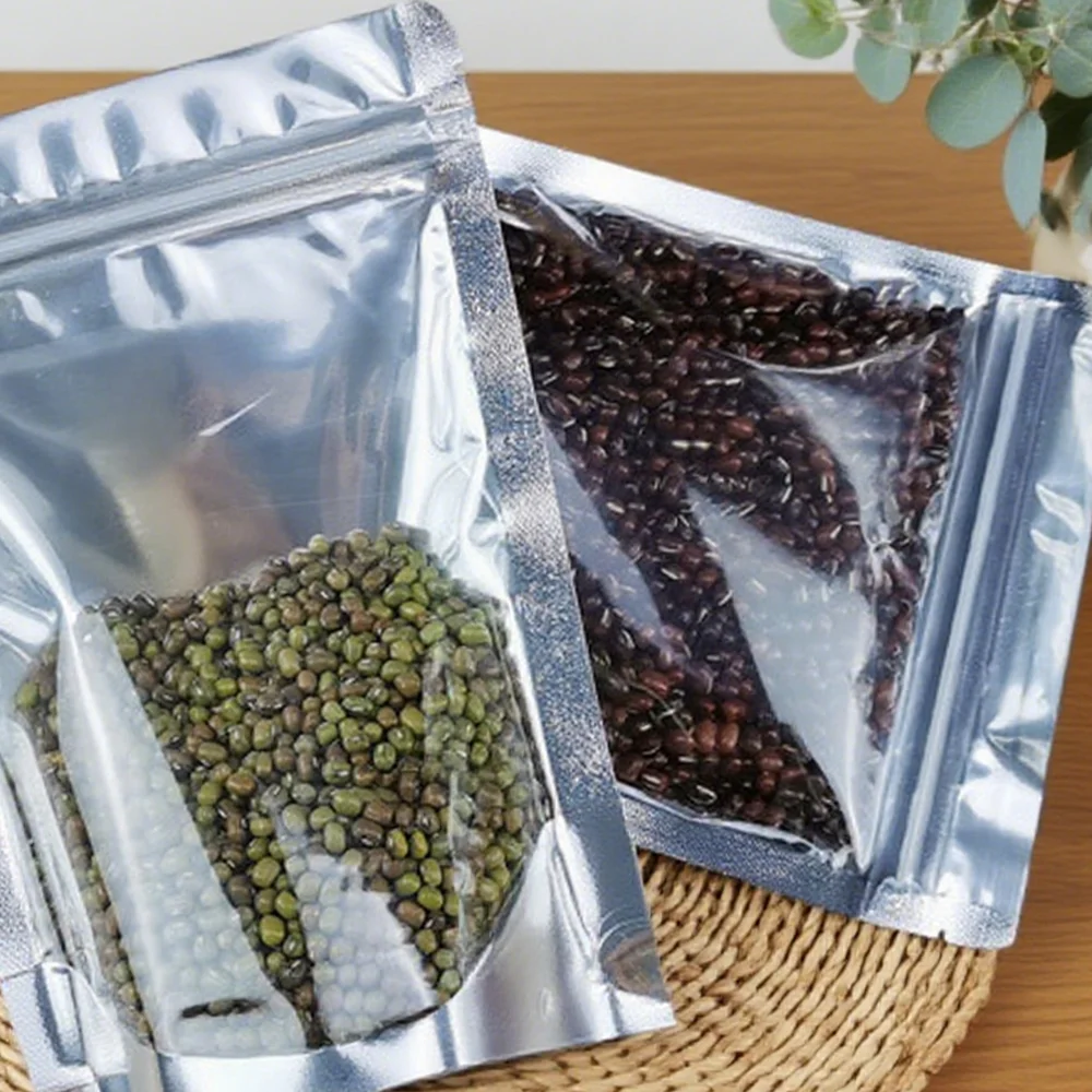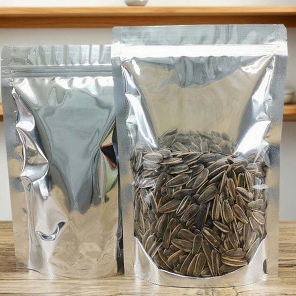 Metallic Clear Front Stand Bag Packaging Resealable Fast Delivery Doypack-Plastic Heat Seal Food Storage Mylar Ziplock Pouch Products Description Name Aluminum Foil Mylar Zipper Bags Material PET/AL/PE、 PET/VMPET/PE Thickness 0.05-0.