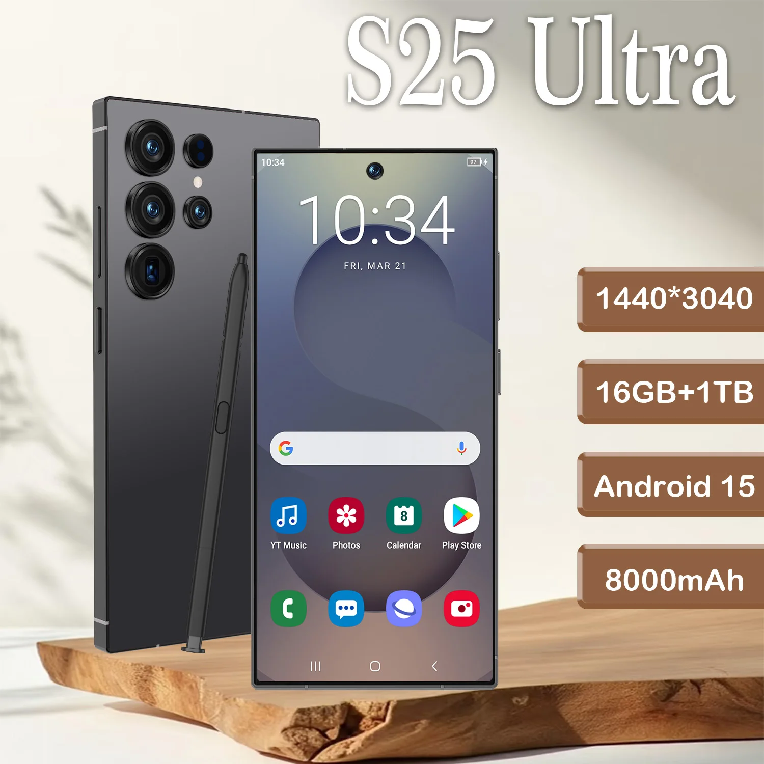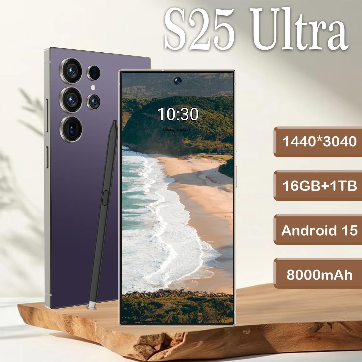 Metallic Frame S25 Ultra 7.3Inch 16GB+1TB 5G Dual SIM Smartphone with HD OLED 90Hz Display LTE Android 13 8000mAh+ Battery