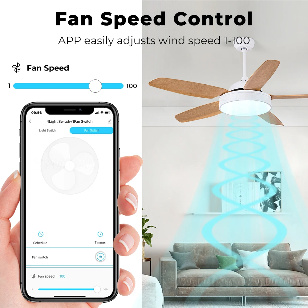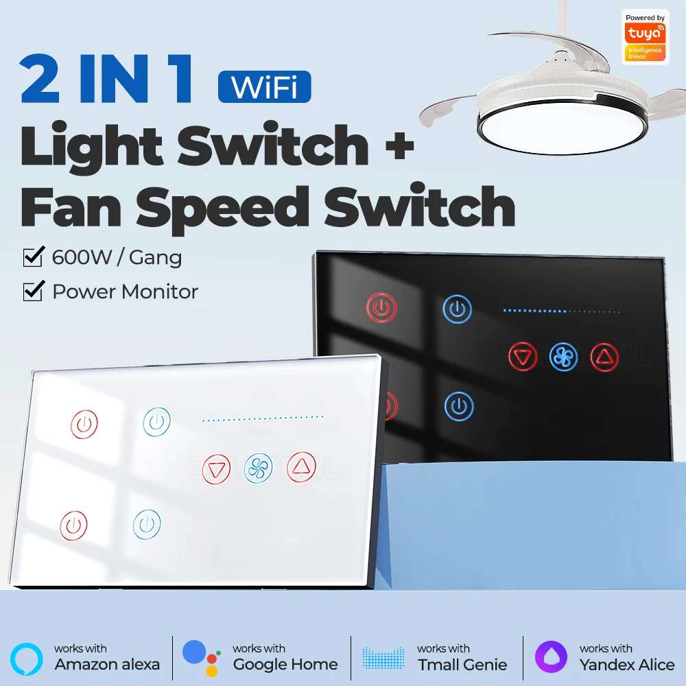 Middle East Pakistan Tuya WiFi Ceiling Fan Speed Control Timer Voice Power Monitor Alexa Google Home Smart Light Switch