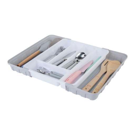 5 compartments for cutlery | Extending – slide out trays for utensils | Durable polymer construction | Made in the UK