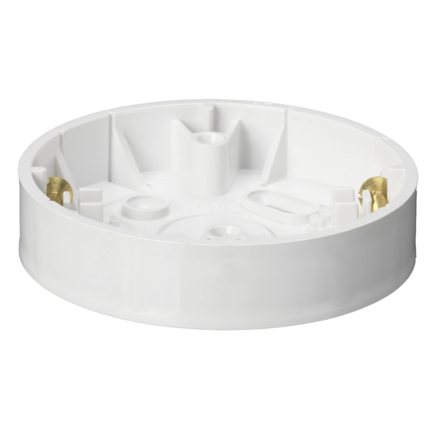 Ceiling Rose Box 82 x 13.5mm White · · · Suit trunking dimensions of 16x16mm to 25x16mm entries · · Overall diameter 82mm · · 13.5 deep · · Made of white UPVC · · 50.8mm fixing center · · BS 4662 · · 82mm overall diameter