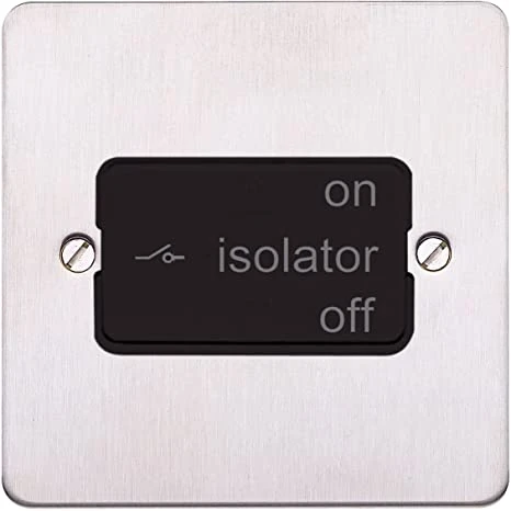 MK 3 Pole Fan Isolator Brushed Stainless Steel Black Inserts Switch