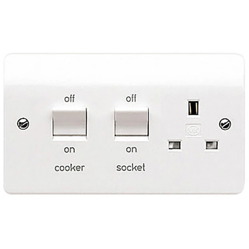 MK Cooker Control Unit Double Pole Main Switch+Socket 45A White