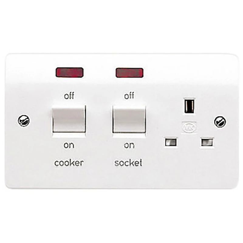 MK Cooker Control Unit Double Pole Main Switch+Socket Neon 45A White
