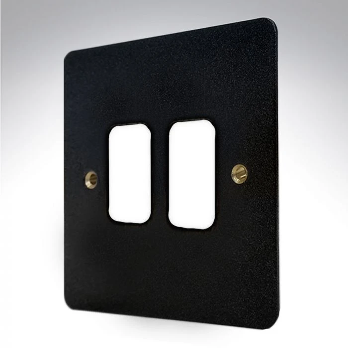 MK Edge Lustrous Black Metal 2 Gang Grid Plate