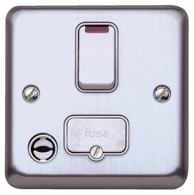 MK Electric Connection Unit 13A DP Switched Fused 13A Brushed Chrome Flex Outlet&Neo