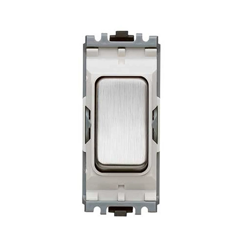 MK Electric Grid Switch 1 Way DP Push Make 20A Brushed Stainless Steel White Inser