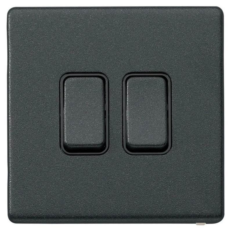MK Electric Plate Switch 2 Gang 2 Way SP 20A Lustrous Black Black Insert