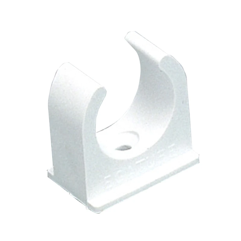 Half clamp model spring clip made up of a white polyvinyl chloride (PVCu) housing body, designed for use as an accessory for electrical conduits. Suitable for use in industrial and commercial environments plus the vast selection of components makes it ver · · · Simple and fast installation · · Durable and impact resistant