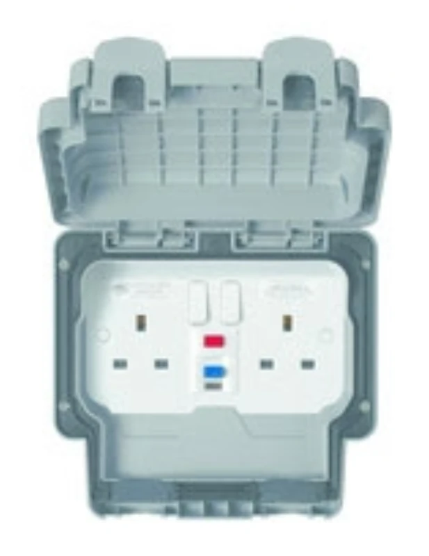 MK Electric Socket 2 Gang Switched SP RCD Active IP66 13A 30Ma White