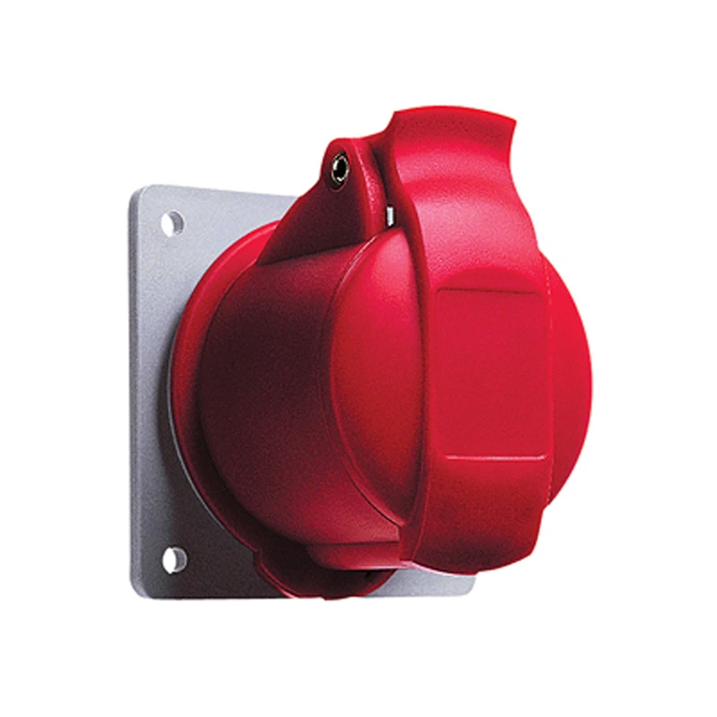 Straight, Splashproof, Minimised Flange Option Available · · · Colour: Red · · Current Rating: 32A, Terminal Capacity: 2.5 – 10 sq mm, Voltage Rating: 380 – 415V, IP Rating: IP44, Voltage: 415V · · Height: 75mm · · Mounting Type: Panel · · Number of Pins: 5 Pin · · Number of Poles: Five Pole · · Width: 75mm · · Earth Position: 6 · · Fitting: Straight Socket · · Frequency: 50 – 60Hz