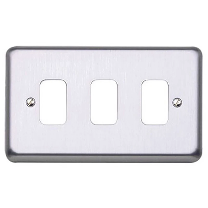 MK Front Plate 2 Gang 3 Module 86 x 146mm Brushed Stainless Steel