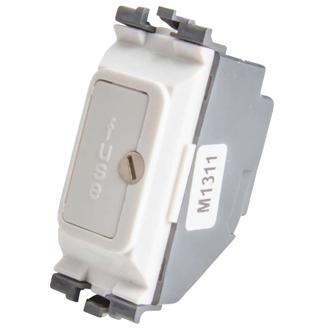 · · Comes complete with 13A cartridge fuse link to BS 1362 · · Back Box Depth is 25mm · · Plate Dimensions is 48 x 23 x 32 mm · · Style is Grid Module · · Easy to fit as they simply clip in to place from the front of the mounting frame