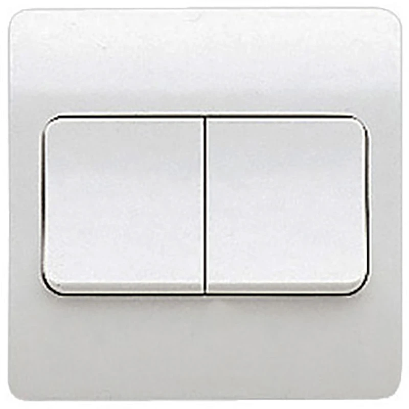 Technical Specifications Technical Specifications Switch Connection type Screwed terminal Material Plastic Method of operation Rocker Type of fastening Engage (snap) Mounting method Flush mounted Colour White Colour of rocker/switch operator White Surface finish Glossy Wiring system Two-way switch Height of device 86 mm Rated current 10 A Number of module spaces (modular system) 2 Width of device 86 mm Nominal voltage 240 V · Technical Data Sheet – Click to Download