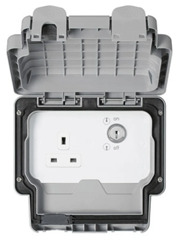 MK Socket 1 Gang Key Operated Double Pole IP66 13A Grey