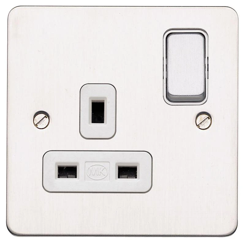 MK Socket 1 Gang Switched Double Pole Dual Earth 13A White White Inserts