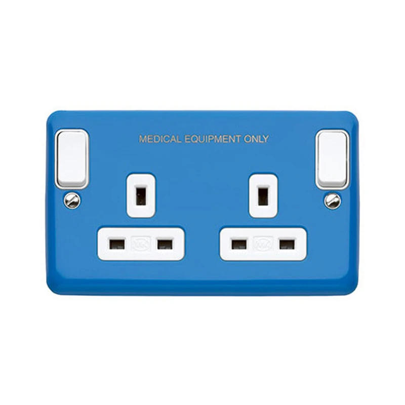 MK Socket 2 Gang Switched Double Pole Clean Earth 13A Blue Engraved Medical