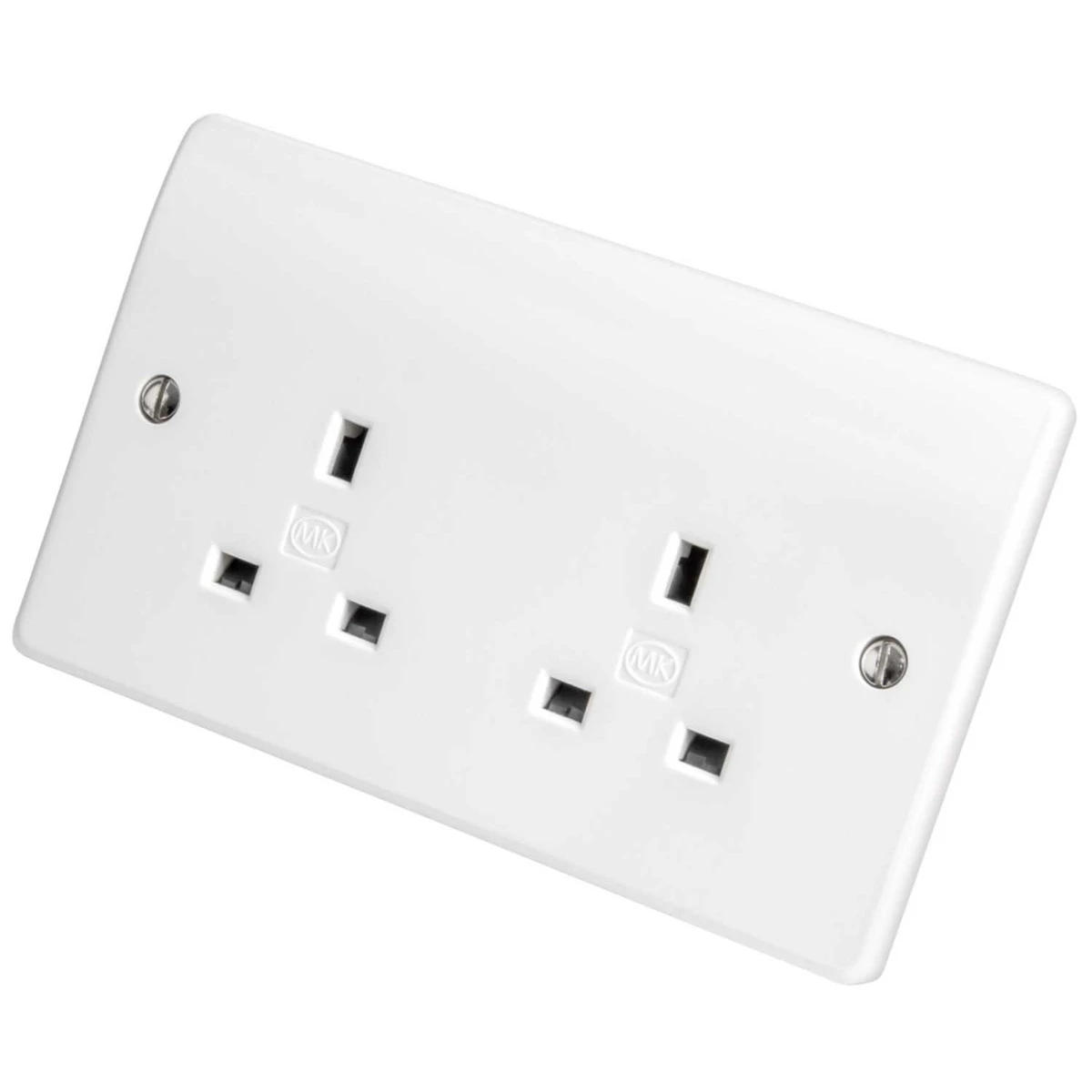 MK Socket 2 Gang Unswitched Dual Earth Flush 13A White