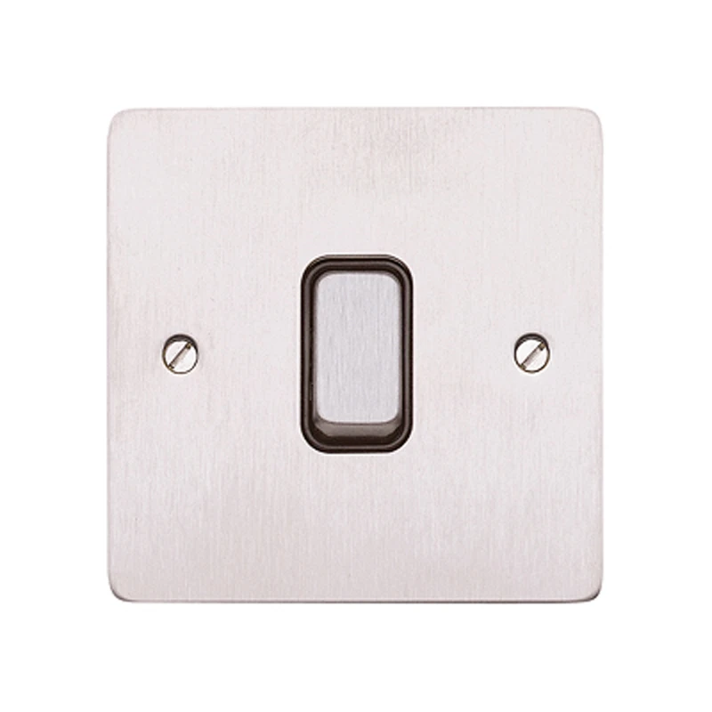 MK Switch 1 Gang 2 Way Single Pole 20A Brushed Stainless Steel Black Inserts