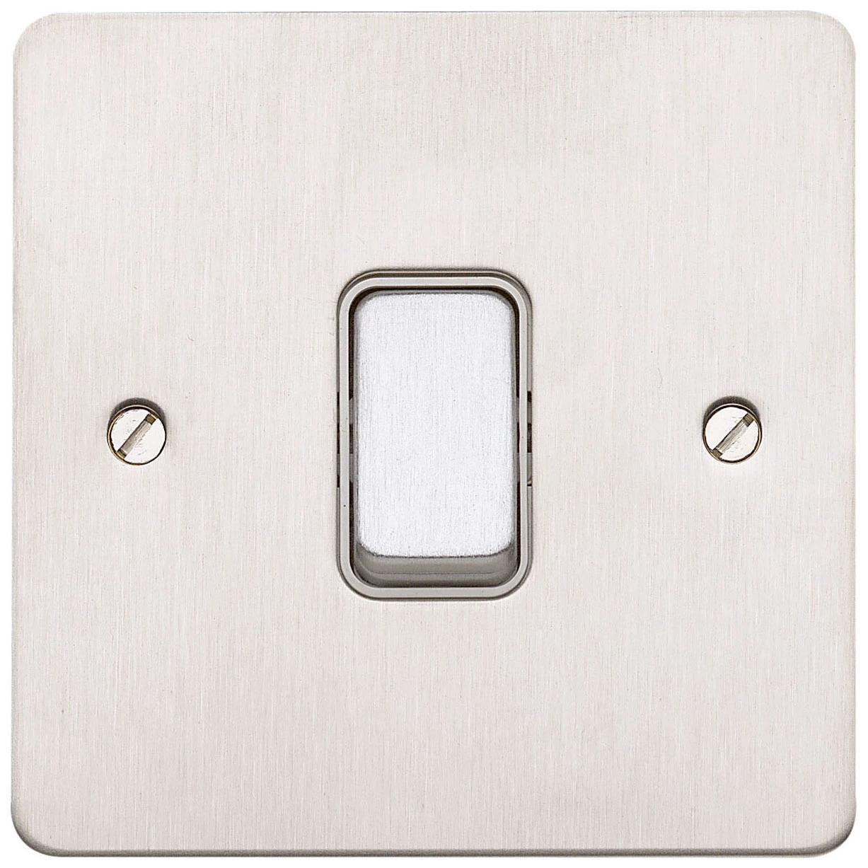 MK Switch 1 Gang 2 Way Single Pole 20A Brushed Stainless Steel White Inserts