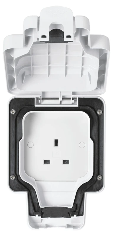 Unswitched sockets are useful for when you need the appliance plugged in to be constantly on. · · · Comes complete with an earth terminal in the back box · · Supplied with 1 and 2 gang inserts · · Fixing holes are for No.8 woodscrews (not supplied) · · 4 x 20mm entries (top, bottom and each side) · · Supplied with an earth terminal and a loop terminal in the back box · · IP66 to BS EN 60529: 1992 · · BS 1363 Pt.2: 1995