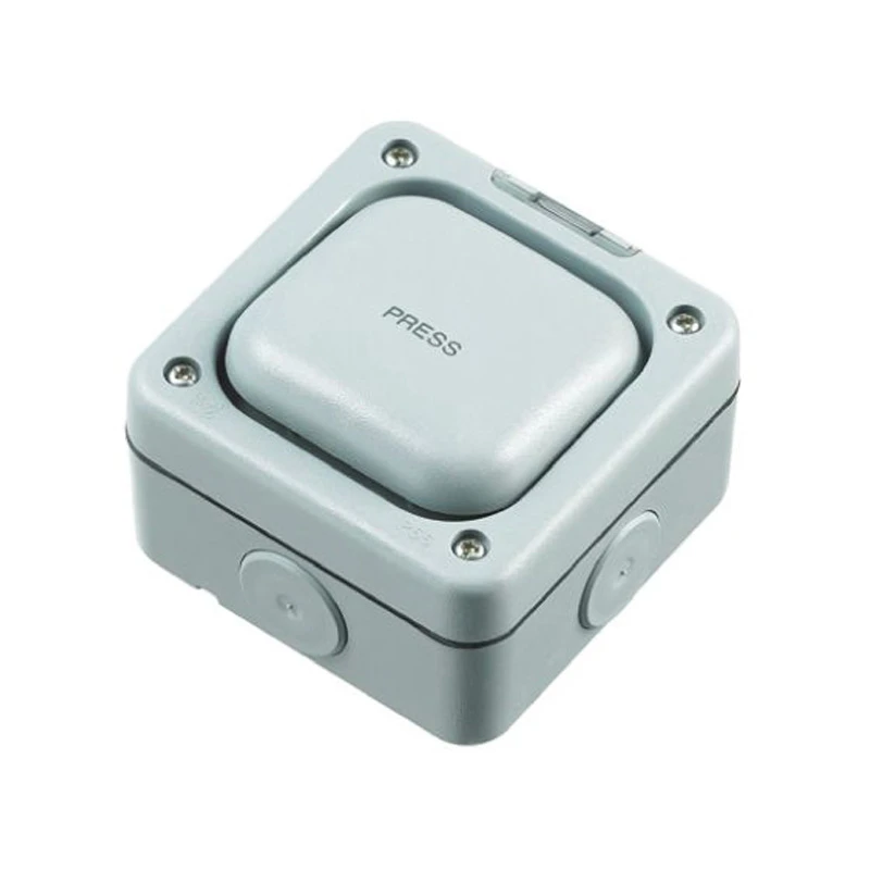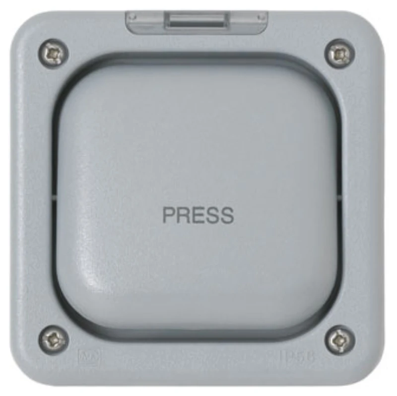 MK Weatherproof Switch 1 Gang Double Pole 20A IP66 Press Grey