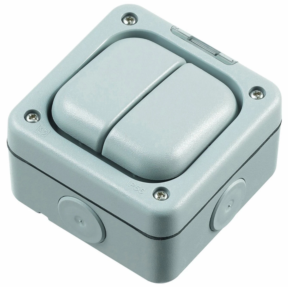 The K56422GRY is Grey, 2 Gang Enclosure, for use with any two switch modules. The enclosure comes complete with an Earth Terminal and a Loop Terminal in the back box. The MK Masterseal Plus range is for use in areas where dust and water could get in to any wiring devices that are in place. The range has been specifically designed to combat this problem as the offer an Ingress Protection rating of IP66. This means it offers total protection against dust and high pressure jets of water from all directions. These facilities make the Masterseal Plus range ideal for use in laboratories, factories, commercial kitchens, swimming pools and warehouses. · · · No. of gangs 2 · · Fixing Centres 120.6mm · · This enclosure is for use with the MK Masterseal switch modules (to be purchased separately) · · Fixed gasket · · Mounting type Surface · · Push fit knockouts and conduit entries · · Rear drill holes · · Voltage 230v · · IP66