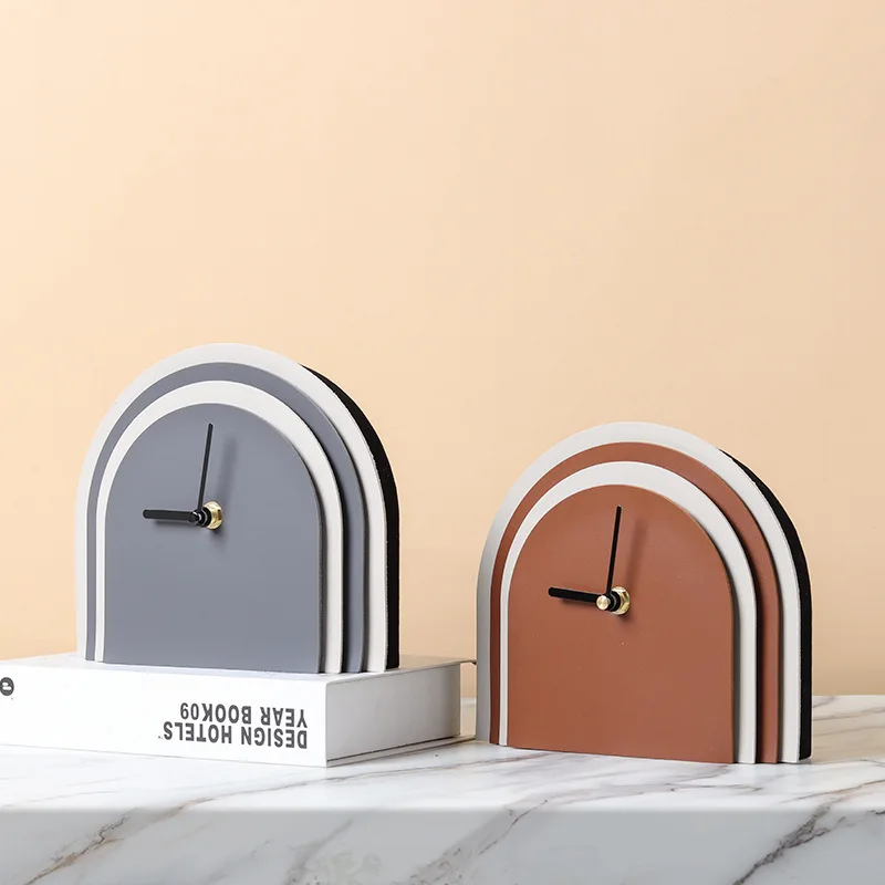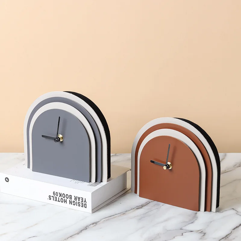 Modern Nordic Luxury Style Wooden Desk Clock Silent Quartz Movement Luminous Geometric Arch Design for Home Room Decoration