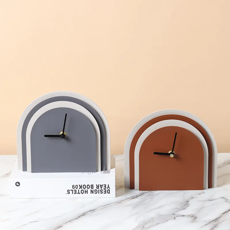 Modern Nordic Luxury Style Wooden Desk Clock Silent Quartz Movement Luminous Geometric Arch Design for Home Room Decoration Pack of 2