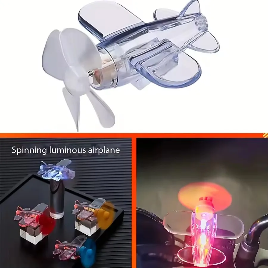 Product Name: LED Rotating Mini Airplane Fan with Adhesive – Suitable for Car and Motorcycle Rearview Mirrors Product Highlights: Stylish and Cool: Mini airplane design with colorful LED lights. Eye-catching at night, adding a unique and stylish look to your vehicle.