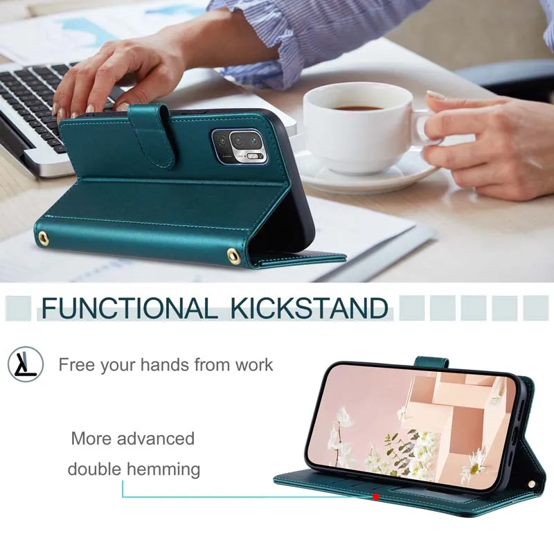 Multifunctional Redmi Note 10 5G Mobile Case Woolen Diamond Design PU Leather Wallet Strap and Phone Stand Cover