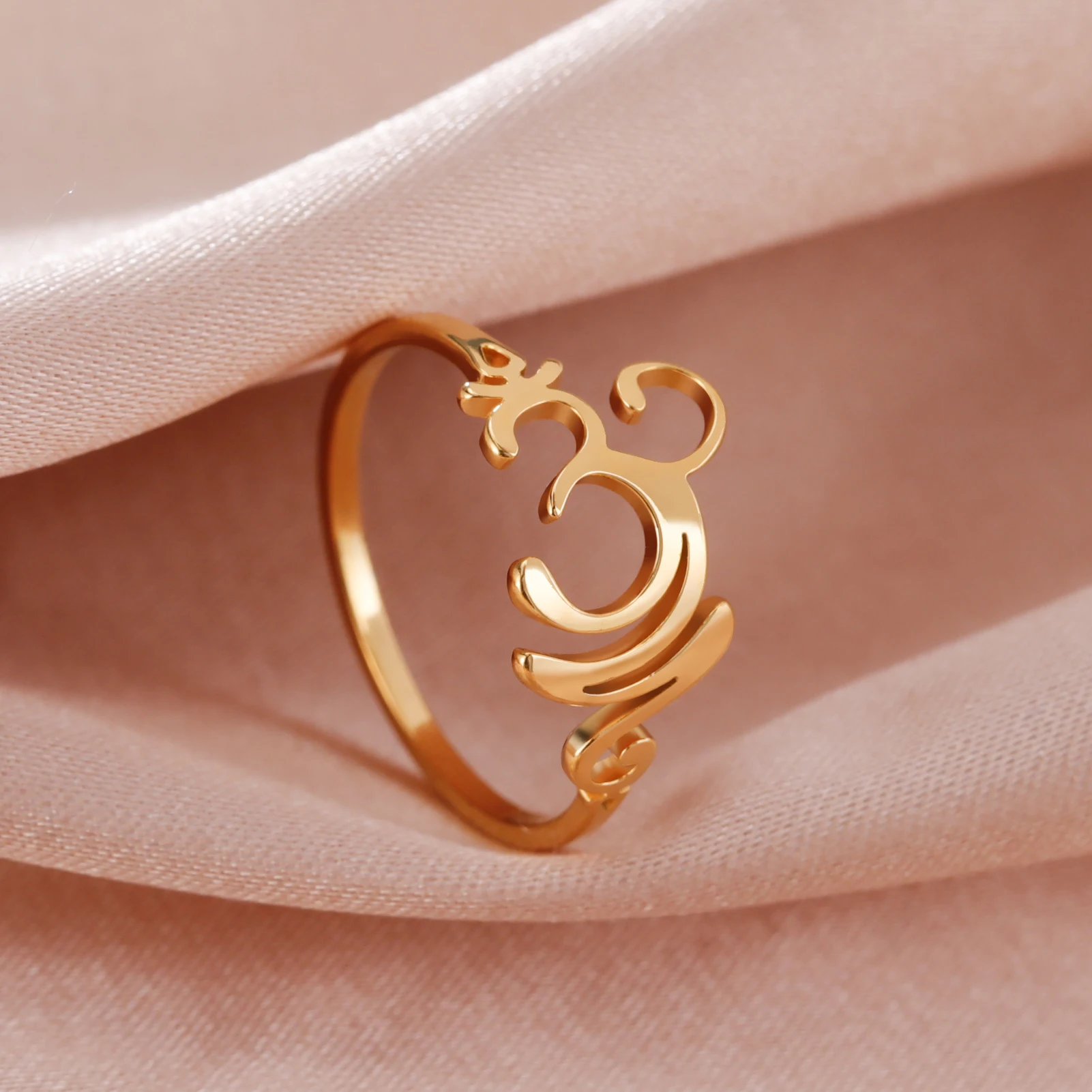 Mysterious Vintage Yoga OM Buddha Hindu Ring Finger Accessories for Women Men Stainless Steel Jewelry Amulet Gift