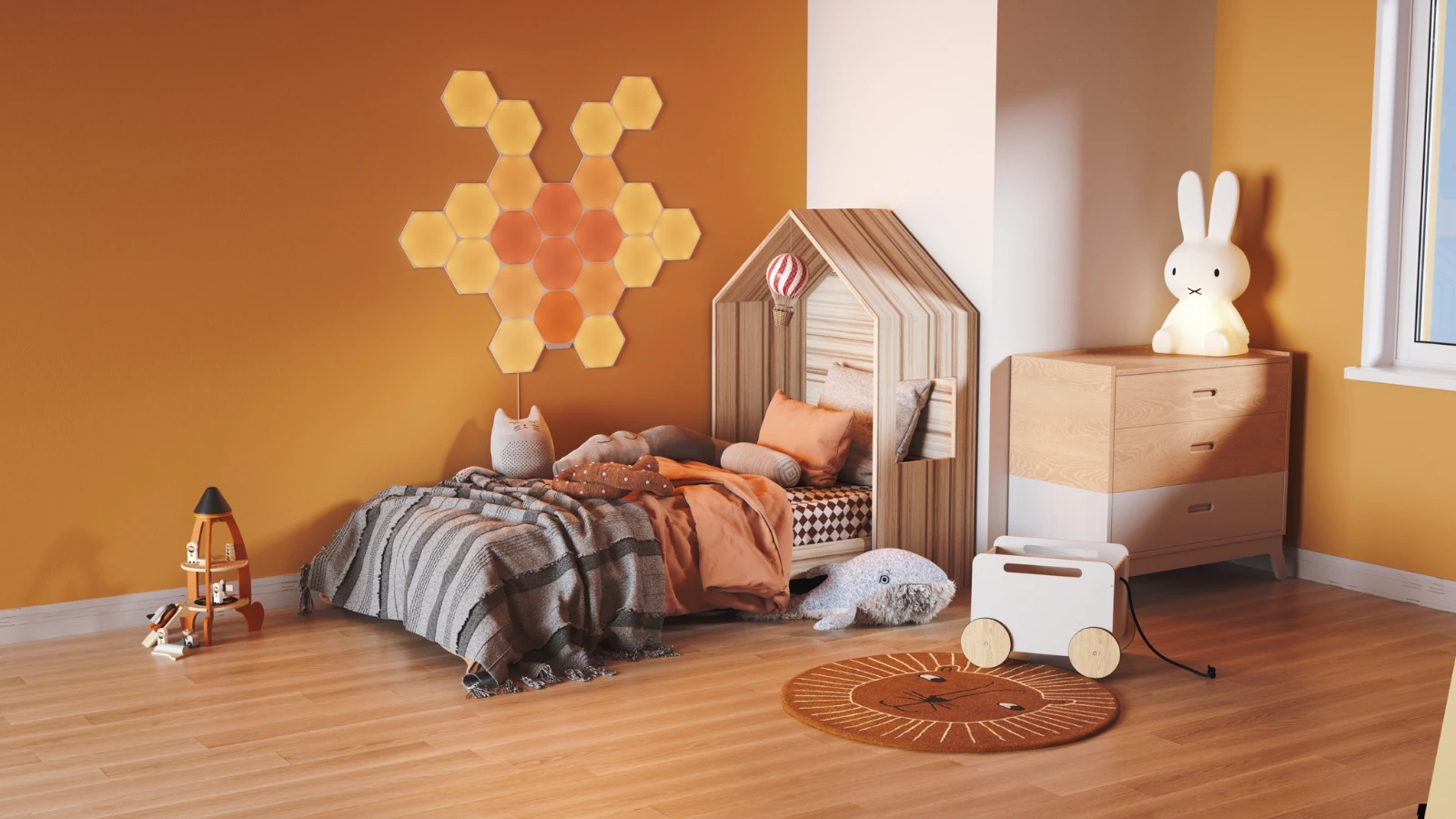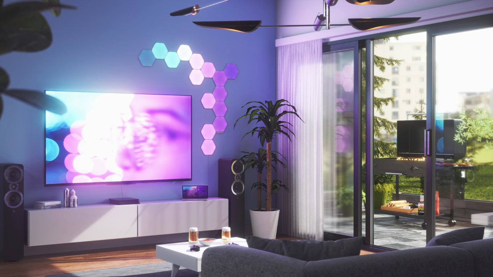 The Nanoleaf Shapes – Hexagons elevate the concept of smart lighting into a creative journey of design. A combination of smart technology and sleek ultra-thin design, the modular LED light panels open limitless possibilities for you to explore, create, and play. Transform your space with multi-sensory experiences like touch interactions, real-time music sync, screen mirroring, and more. Customize and create your own Scenes and Playlists in the Nanoleaf App. To install, simply mount to the wall with the included “no-drill” Mounting Tape. Hexagons are designed to work with future shapes, offering limitless lighting, design and IoT possibilities for your smart home decor. · · · Designed with Connect+ technology to work together with other shapes to create mosaics of light. · · Enjoy touch-enabled experiences. Watch light panels respond dynamically to your touch or play interactive games. · · The Rhythm feature transforms your favorite songs into dancing symphonies of color and light. · · With the Screen Mirror feature, your on-screen activity is reflected onto your lights for an immersive entertainment experience. · · 16M+ colors with 1200K-6500K white light temperature range and brightness control. · · Nanoleaf’s exclusive LayoutDetectTM technology enables color animations to flow intelligently between panels based on your exact layout. · · Flexible control through touch, voice assistants, Nanoleaf App, manual controller, and more. · · With Touch Actions, a single press on a Hexagon will activate Scenes to control any or all of your HomeKit products at once. Simple drill-free installation with the included Mounting Tape.