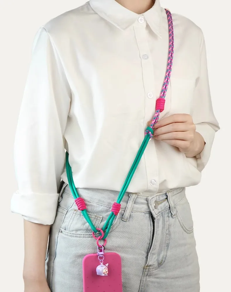 New 3-in-1 Adjustable Anti-Lost Polyester Phone Lanyard Shoulder Neck Wrist Strap and Round Rope Chain for Mobile Phones