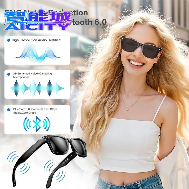 New 800W Camera AI Translation Smart Sunglasses with 4K Photo/Video Recording Waterproof for & Voice Assistant for Men