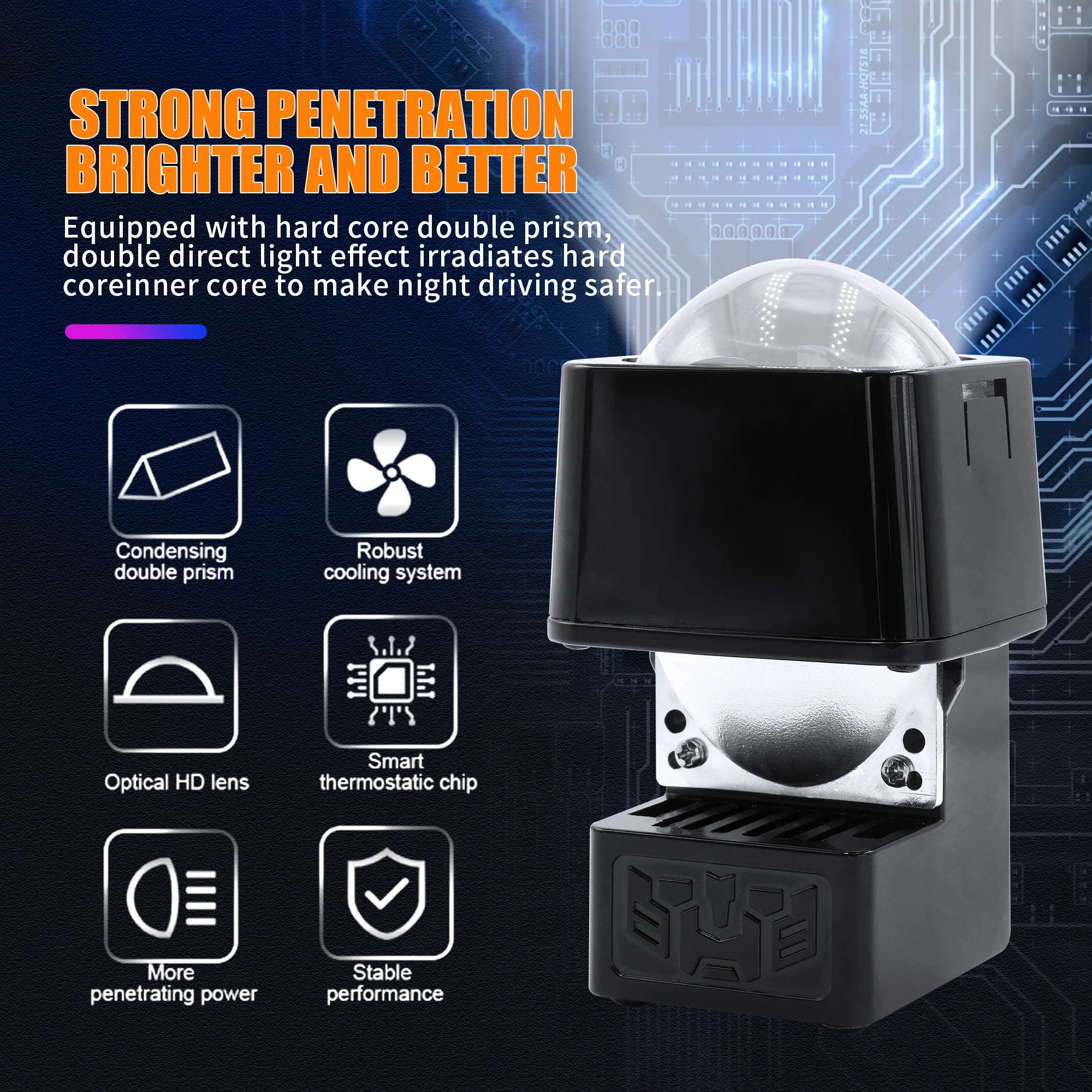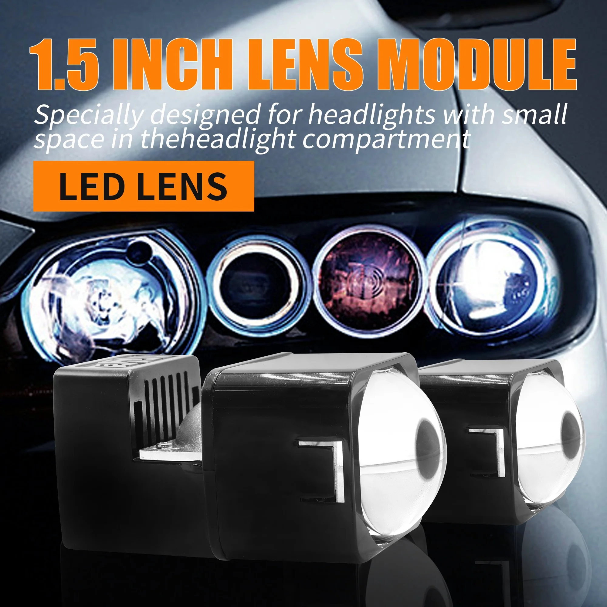 100W 1.5 Inches 1.8 Inch 9006 H7 H4 Auto Bi-LED Compatible Various Models IP68 Refit Biled Projector Led Headlights Pack of 2