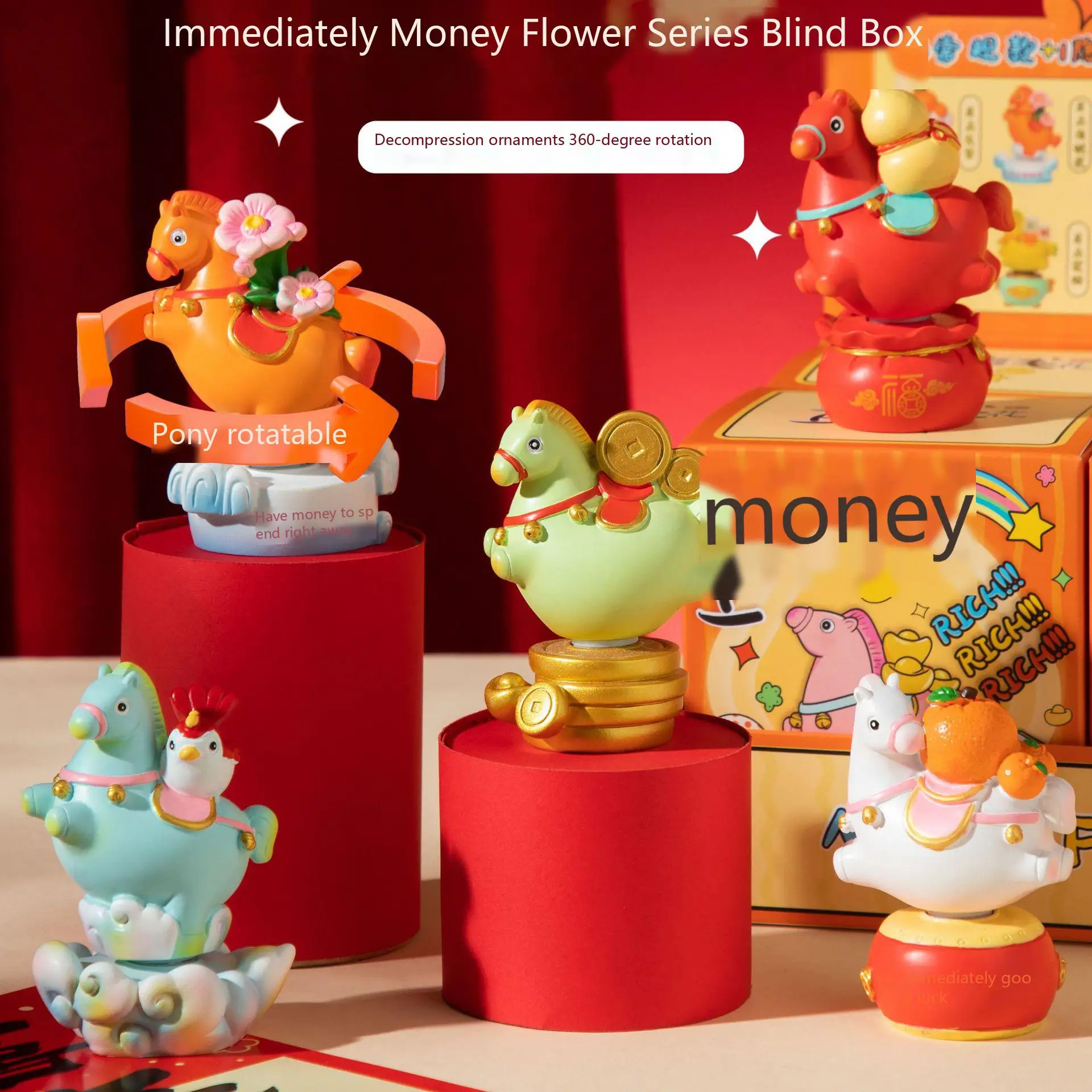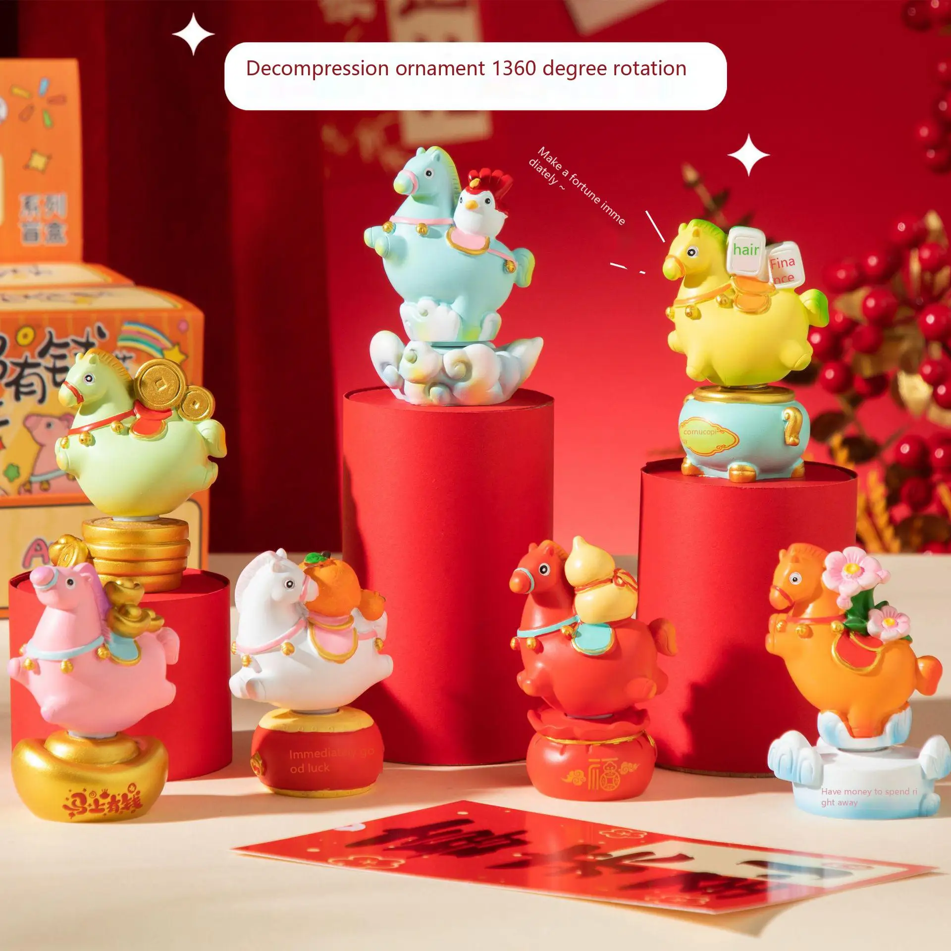 New Best-Selling Horse Year New Year Blessing Rotatable Blind Box Resin Horse Ornaments Lucky Desktop Decor Novelty Gift