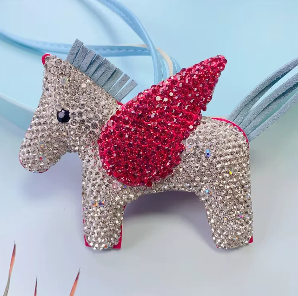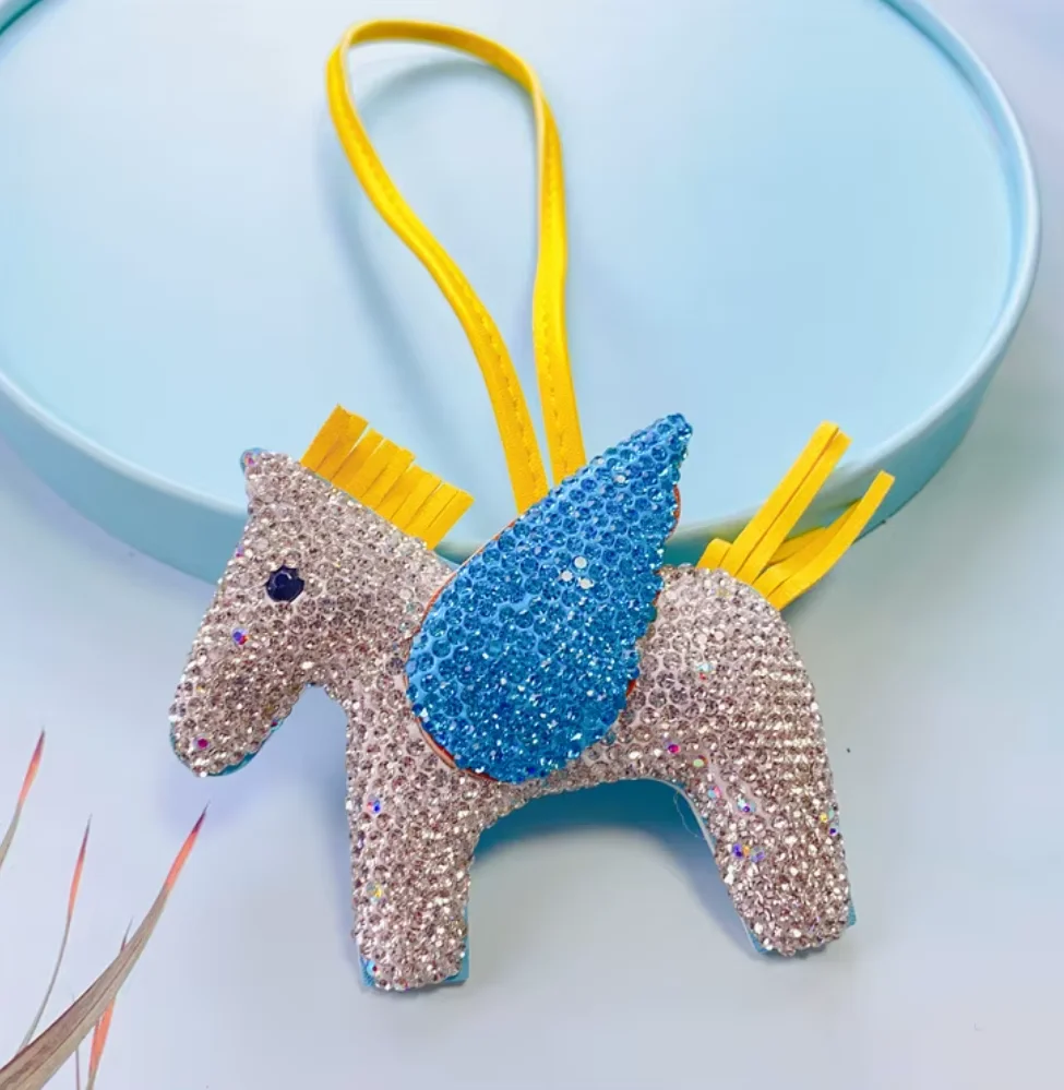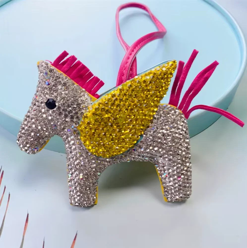 New Creative Bling Crystal Rose Quartz Flying Horse Cute Animal Durable Jewelry Handbag Accessories Handmade Charm Bag Car Pack of 20