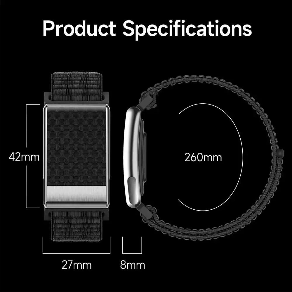 Name New Custom Logo Waterproof Screenless Health Monitor Fitness Tracker ECG Smart Bracelet Smart Bangles Size 42.3*27.4*8mm Case Material ABS plastic Platform Magnetic charging Battery Capacity 180mAh battery Platform JL7013A+Goodix3228T+PD2325 Strap Color Black App G band Strap Silicone or Nylon Functions ECG heart health analysis, heart rate, 24-hour scientific sleep, blood oxygen, HRV, women’s health (menstrual tracking), remote care for relatives and friends, body temperature, blood component(blood lipid uric acid, etc.), Body composition detection (BMI body fat rate, etc.), blood pressure, stress, medication reminder and other health functions, Step counting/calories/distance, 120+ multi-exercis App Language Danish, Ukrainian, Urdu, Russian, Croatian, Hungarian, Bok malvin Norwegian, Hindi, Indonesian,Turkish, Bengali, Hebrew, Greek, German, Italian, Czech, Slovak,Japanese, French, Polish, Persian, Thai, Swedish, Lithuanian, Simplified Chinese, Traditional Chinese, Romanian, Finnish, English, Dutch, Portuguese, Spanish, Vietnamese, Arabic, Korean, Malay