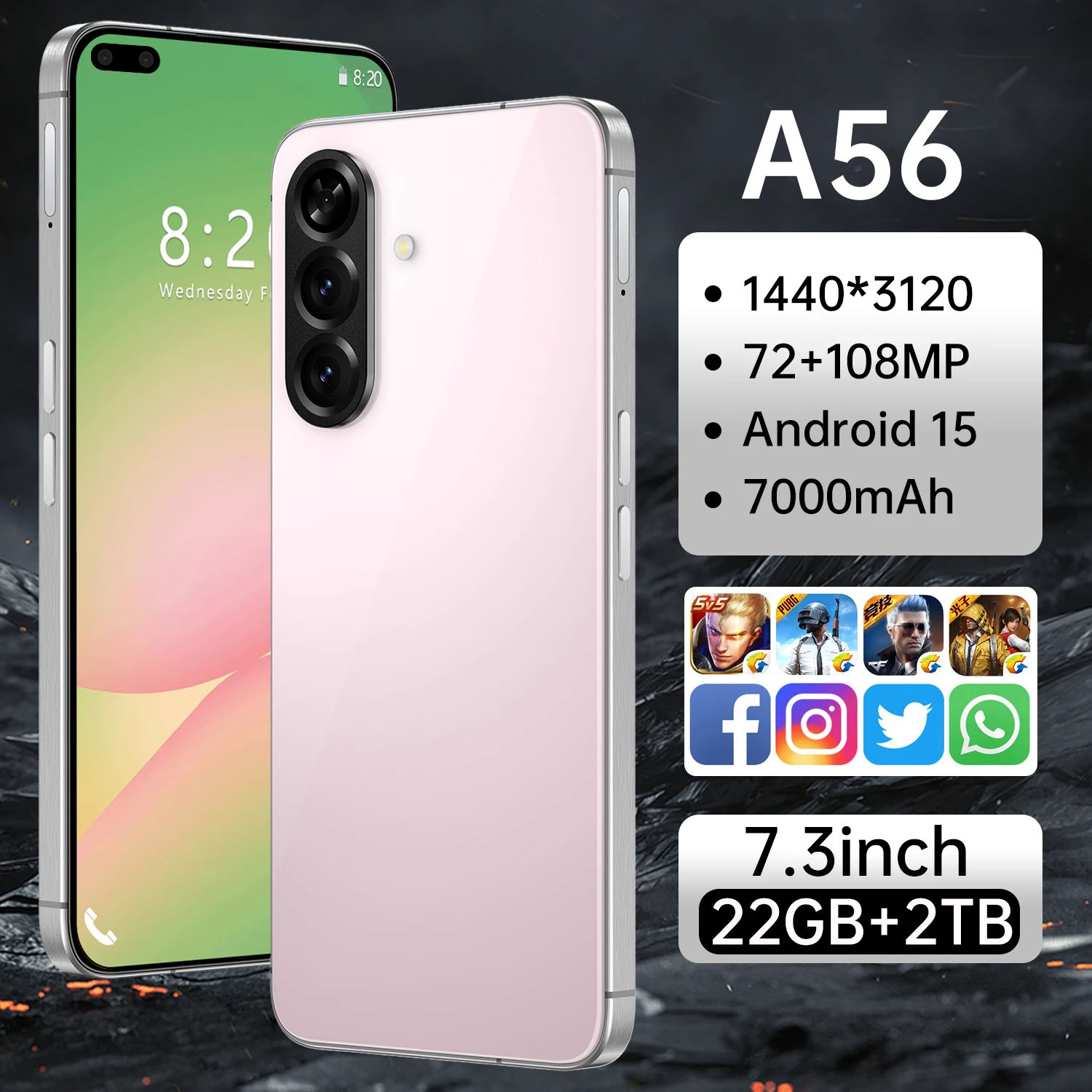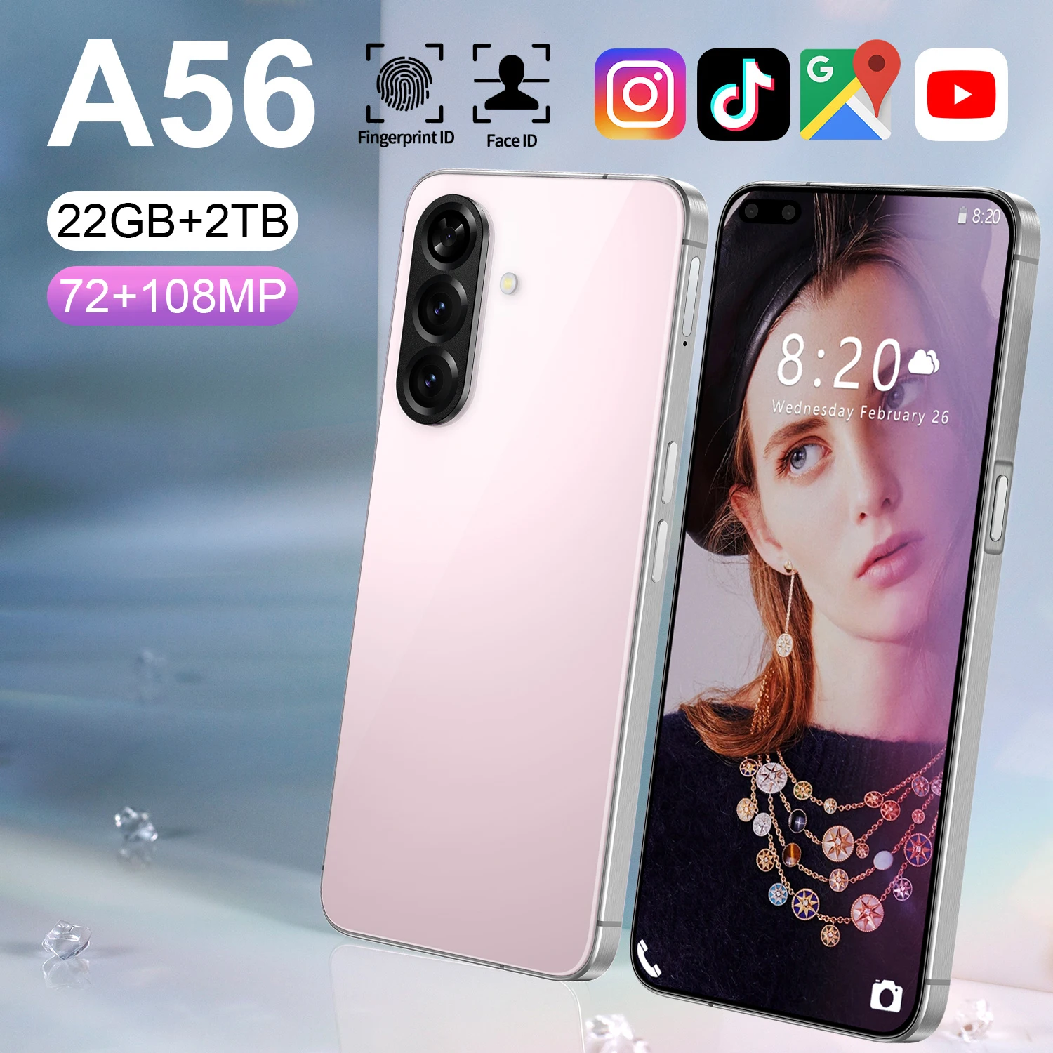 New Model 16G+1TB 5G Smartphone A56 New Mobile Phone 7.3inch Large-Screen 108MP 144Hz Big Screen Global Cell Phones