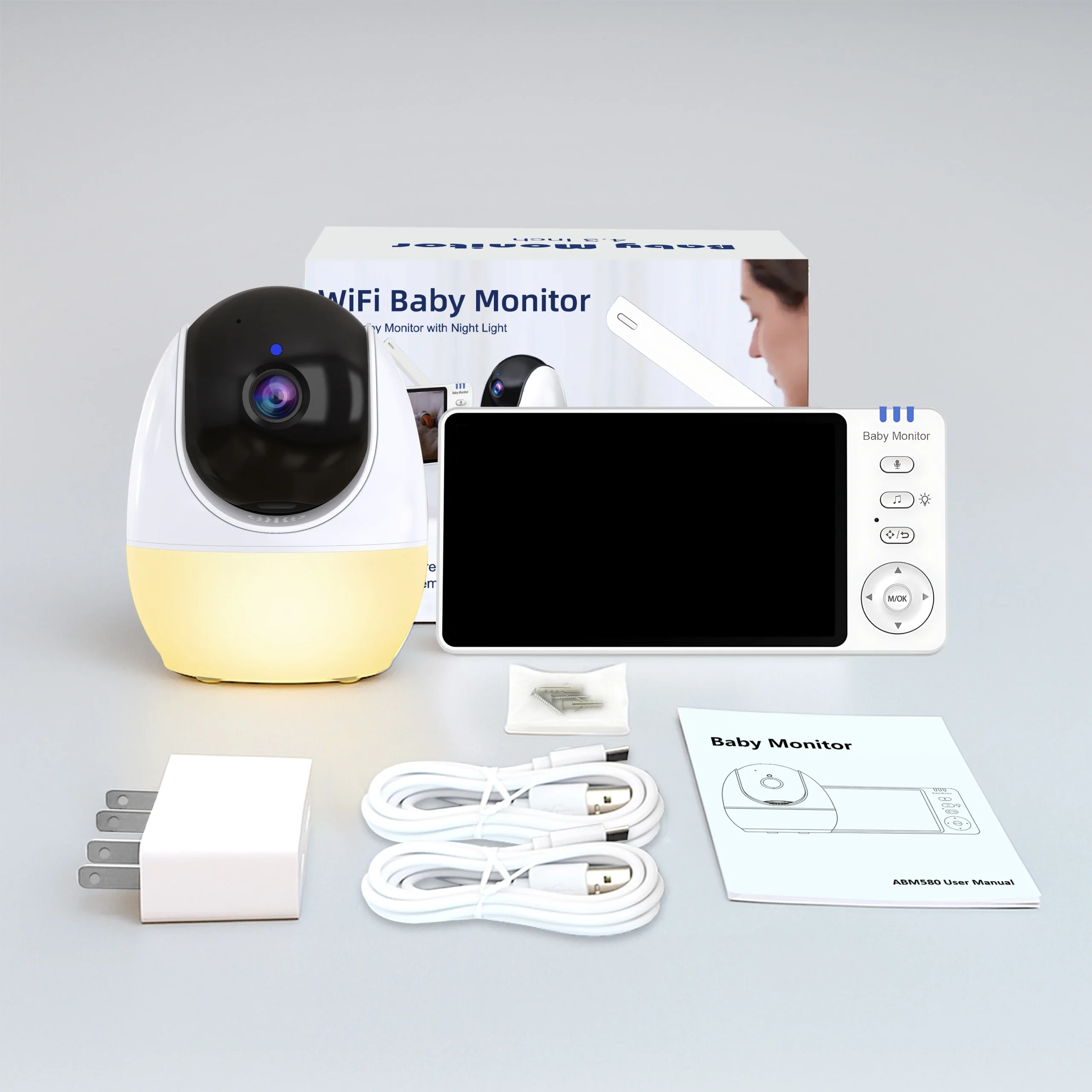 Product Name Baby Monitor Power Supply 5V 1.5A Model number ABM580 View Angle 75 Degree Front Lens SENSOR COMS Camera Focal length 4mm Battery Capacity of Monitor 3500mah Camera Power Consumption 0.92W Monitor Power Consumption 0.85W Display 5-Inch LCD Touch Screen Operating Temperature -4℉-149℉ Camera Resolution 1920*1080 Certification CE FCC ROHS Transmission Distance 300M( In Open Space) Transmission Method 2.4GHz FHSS/WiFi Crying Alarm Support Temperature Detection Support Feeding Alarm Support Lullabies Support Monitor Dimensions 130.7*80.0*18.8mm(L*W*T) Nigh Vision(Automatic) Support Material PC+ABS Title goes here. 1. 5-Inch Color Touch Screen 2. New Two-way Talk Back Intercom 3. Lower Power Consumption 4. IR – CUT automatic switching to meet clear night vision 5. Sensitive Temperature Detection 6. VOX Detection Function Wake-up Mode 7. Built-in 8 lullabies in the Camera 8. 3500MA Large Capacity Lithium-ion Polymer Batteries Screen Lighting 9. 355 Degree Manual Rotation, 75 Degree View Angle, and 120 Degree Vertical View Angle 10. Feeding Alarm, Temperature Detection, Crying Alarm Customer reviews Why Choose Us Exhibition Contact Us Product Description Recommended by seller 5″ Display 720P Baby Phone Camera 2.4G Wireless Two-way Audio Nanny Feeding Alarm Temperature Sensor Baby Monitor 5 Inch Wifi.