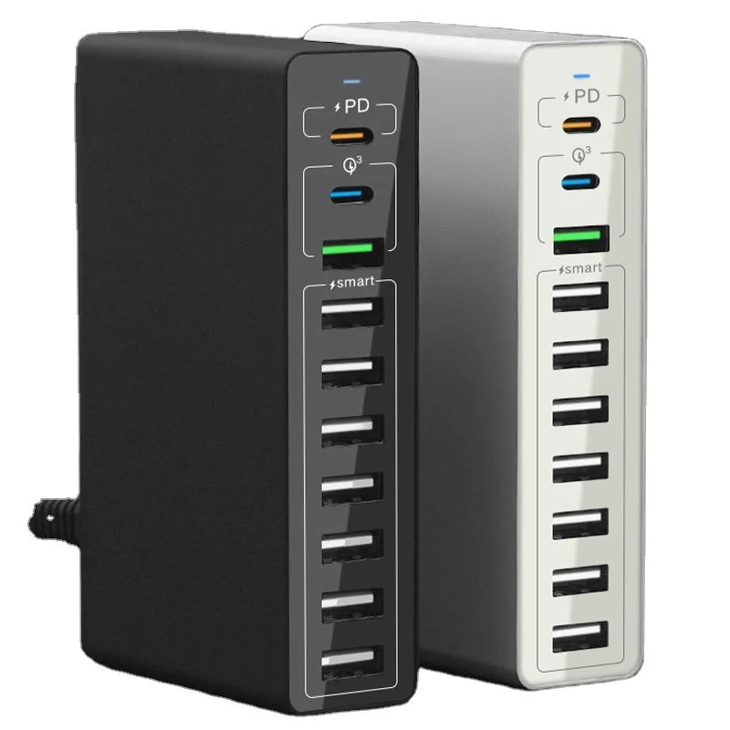 New Product 10-port Dual Type-c PD 20W Fast Charger 18W USB QC3.0 Multifunction 65w 10-port 7 USB Hub Charger Dock Station